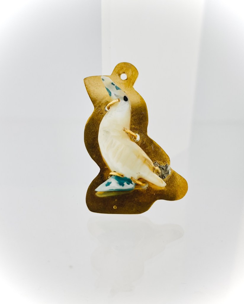 While on a trip to the Galapagos, I bought a necklace with a blue- footed booby. The blue- footed booby is a bird native to the Galapagos. My trip to the Galapagos was life changing. I spent 10 days with my family exploring the beauty of the archipelago. I got this necklace as a gift from my aunt to commemorate the trip. Eventually the necklace broke, but the charm remained. In order to revive the charm, I used wired prongs to set the blue footed-booby.