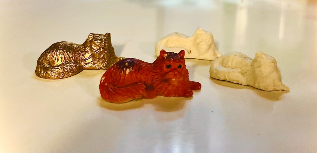 The Cat Army is composed of three molds, 2 in porcelain and 1 in bronze. My most recent class has had a highlight on mold casting. Throughout the course, I created duplicates of the miniature cat toy. The original cat is made of plastic and is in the center of the army. These mini cats continue to live their life in window frames and plant pots.